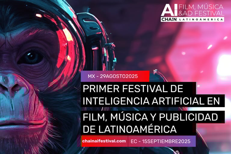 PRIMER FESTIVAL EN LATINOAMÉRICA DE IA PARA FILM, MÚSICA Y PUBLICIDAD. CREANDO COMUNIDAD, INCENTIVANDO LA INNOVACIÓN EN LA REGIÓN Y VISIBILIZANDO EL TALENTO. ACTIVIDADES ONLINE Y OFFLINE. MÉXICO Y ECUADOR.